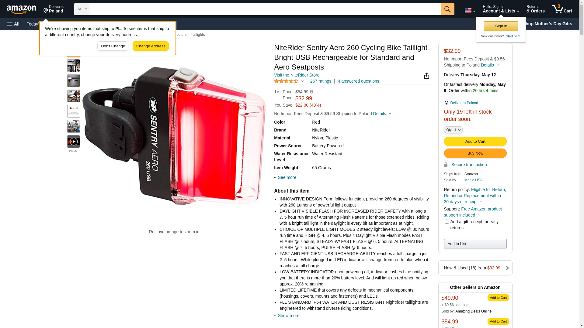 <p>Sentry Aero 260</p> <p>40% of all accidents between vehicles and bicycles are the result of ""rear endings"" Riding with a bright tail light is every bit as important as riding with a head light, and NiteRider offers a range of high quality, durable tail lights for every riding style and budget</p> <p><strong>Features:</strong></p> <ul> <li>Easy on and off adjustable seat post strap mount with quick release tab</li> <li>Multiple light modes</li> <li>Ultra High Visibility</li> <li>Includes Tail Light, Seat Post Mount, and USB Charging Cable</li> <li>Lumens: 260</li> <li>Weight: 65g</li> <li>Modes: 6</li> </ul>