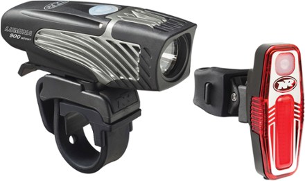 The NiteRider Lumina Boost 900 / Sabre 80 bike light set includes a 900-lumen Lumina Boost front light and a Sabre 80-lumen taillight so you can both see and be seen while riding.