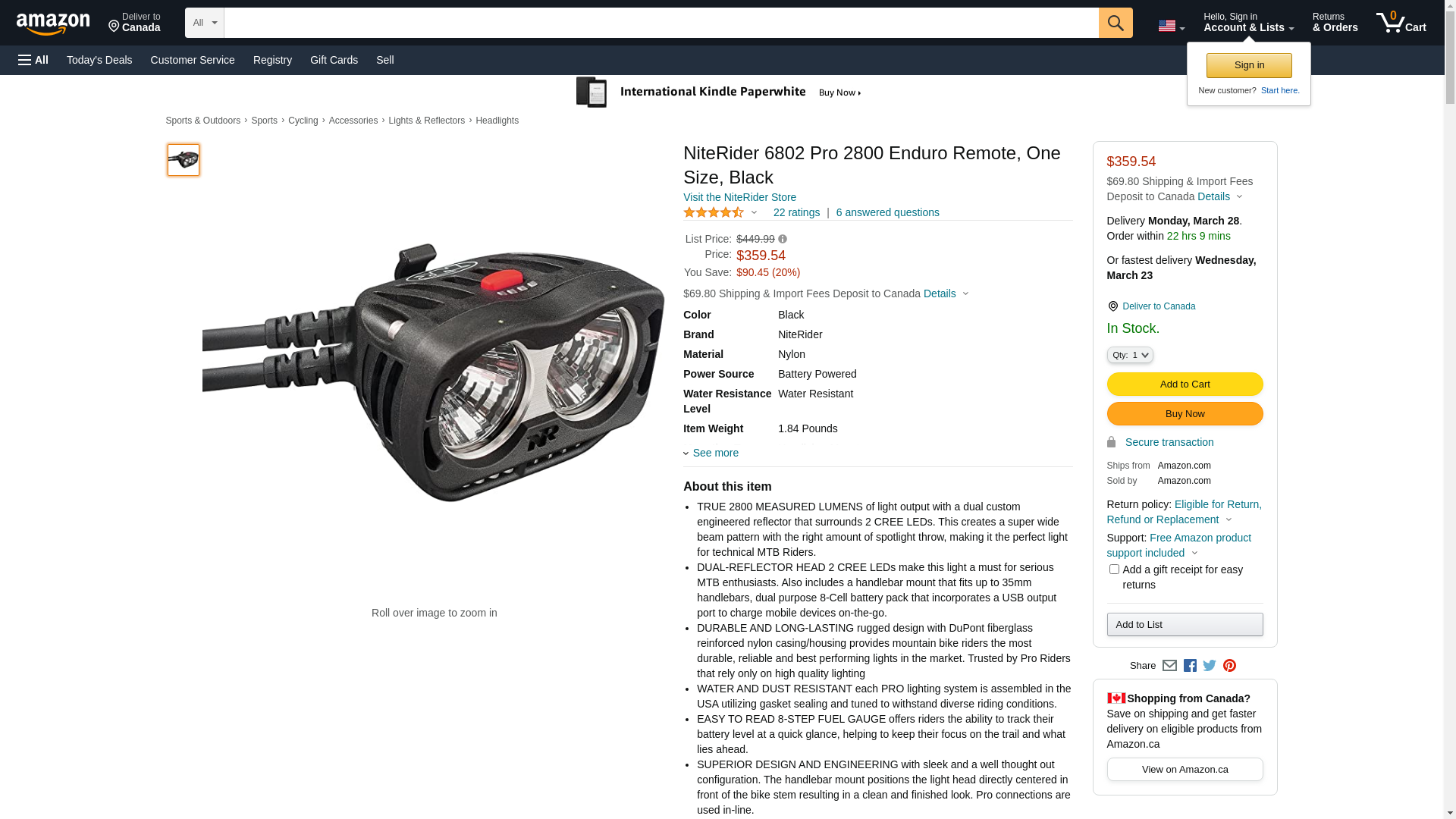 | Manufacturer | NiteRider Lights |