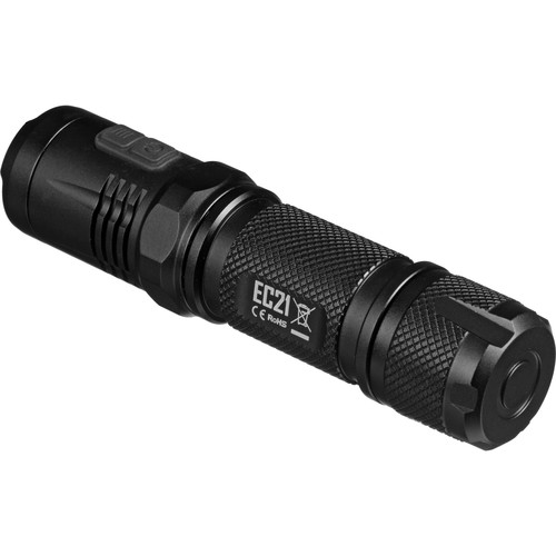 Upgrade of EC2! <br> <br>Nitecore EC21, the superiorly well-rounded and balanced performer, designed with the avid outdoorsmen in mind, is a new member of the Explorer series. Utilizing a CREE XP-G2 LED, the EC21 is capable of producing far-throwing focused beam. Its power source, 1 x 18650 battery, features high energy intensity, lightweight, supreme safety properties and long lifespan. Comes in a compact size and solid construction, the EC21 is ideal for all weather operations, including use in emergencies with its three concealed special modes—Strobe/SOS/Location Beacon. <br> <br>Features <br>Utilizes CREE XP-G2 (R5) LED <br>Maximum output of 460 lumens <br>Dual-switch design ensures unprecedented ease of use <br>Secondary red LED provides constant / flashing illumination <br>Direct access to ultra-low and turbo output <br>Reverse polarity protection prevents damage from incorrectly inserted batteries <br>Toughened ultra-clear mineral glass with anti-scratch coating <br>Constructed from aero grade aluminum alloy <br>HAIII military grade hard-anodized <br>Waterproof in accordance with IPX-8 (2 meters submersible) <br>Tail stand capability <br>Material: Aero grade aluminum alloy <br>Mode: ultralow,low,middle,high,turbo+ <br>strobe,sos,location beacon <br>Runtime: 1h45min,4h45min,12h,50h,430h <br>Battery Configurations: 1 x 18650/ 2 x CR123A battery(not included) <br>Switch Type: clicky <br>Switch Location: body side of the flashlight <br>Brightness: 460 lumens(max) <br>Peak Beam Intensity: 9400cd <br>Range: 194Meters <br>Lens: Toughened ultra-clear mineral glass <br>Carrying Clip: Detachable two-way anti-rolling clip <br>Waterproof: IPX-8 waterproof <br>Color: black <br>Weight: 59g without battery Size: 108mm x 25.4mm(length x body diameter)