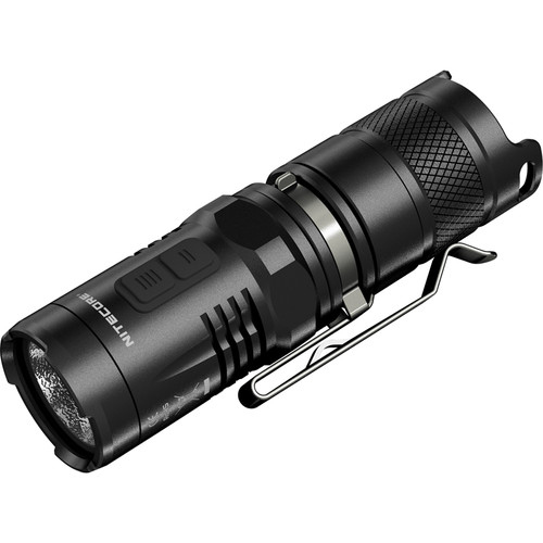 Carry light everywhere you go with the NITECORE MT10C super bright 920 lumen compact tactical flashlight. The MT10C boasts a powerful red light suitable for outdoor applications that preserves night vision while hunting without attracting insects. The red light beacon serves as a signal light for emergency situations. It has 5 brightness levels with a maximum throw of 207 yards on Turbo and runtime up to 170 hours on Low.<br><br>A tactical tail switch enables access to momentary and constant illumination. The side switches provide direct access to the red light and adjustments of 5 brightness levels of white light. Its robust aluminum, anti-rolling body makes the MT10C suitable for all weather and terrain operations. The stainless steel titanium-plated clip makes it ideal for everyday carry in your pocket, bag and gear.<br><br><b>Specifications:</b><br>* LED: CREE XM-L2 U2 </br>* Maximum Brightness: 920 lumens</br>* Peak Beam Distance: 207 yards</br>* Peak Beam Intensity: 9000 cd</br>* IP Rating: IPX8 - 2m waterproof and submersible </br>* Impact Resistance: 1 m</br>* Brightness & Runtimes:<br><b>Using 1x IMR18350 Li-ion Battery:</b><br>++++ Turbo: 920 lumens / 30 min<br>++++ High: 500 lumens / 45 min<br>++++ Mid: 180 lumens / 1 hr 45 min<br>++++ Low: 70 lumens / 5 hr<br>++++ Lower: 1 lumen / 120 hr<br>++++ Red Light: 0.8 lumens / 23 hr<br>++++ Signal Light : 0.8 lumens / 24 hr<br>++++ Strobe: 920 lumens / --<br>++++ SOS: 920 lumens / --<br>++++ Location Beacon: 920 lumens / --<br><b>Using 1x CR123 Battery:</b><br>++++ Turbo: 480 lumens / 45 min<br>++++ High: 280 lumens / 1 hr 30 min<br>++++ Mid: 135 lumens / 3 hr<br>++++ Low: 50 lumens / 8 hr<br>++++ Lower: 1 lumen / 170 hr <br>++++ Red Light: 0.8 lumens / 18 hr<br>++++ Signal Light : 0.8 lumens / 20 hr<br>++++ Strobe: 480 lumens / --<br>++++ SOS: 480 lumens / --<br>++++ Location Beacon: 480 lumens / --<br>* Dimensions: L-3.59"xW-1"xH-1"<br>* Weight: 2.01oz<br><br>
