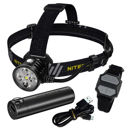 Nitecore HU60 1600 Lumen Focusable and Rechargeable Headlamp with Remote Control and 5000mAh Waterproof Power Pack