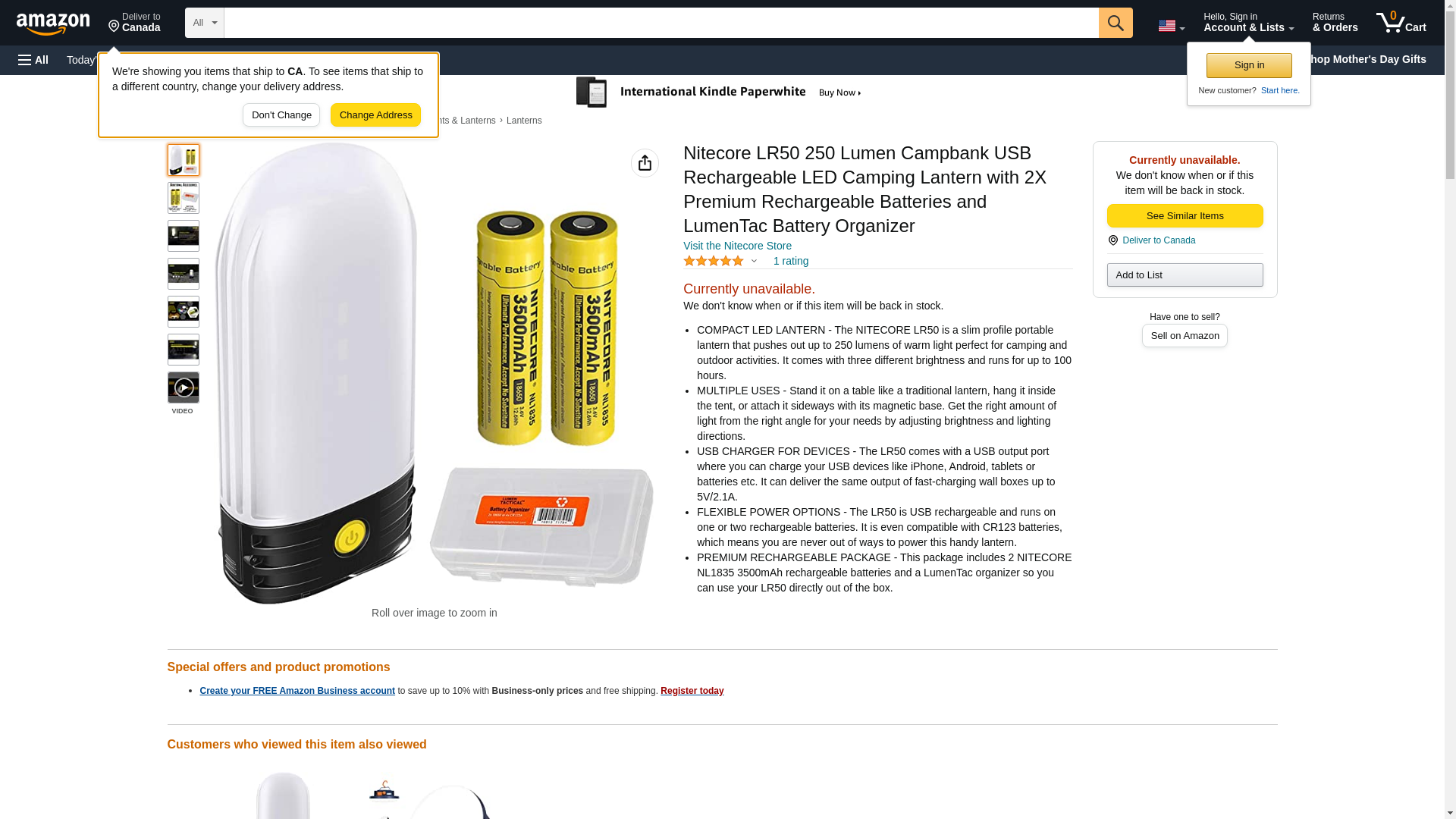 The NITECORE LR50 is a slim profile portable lantern that pushes out up to 250 lumens of warm light perfect for camping and outdoor activities. This ultra compact lantern is great in any situation weighing under four ounces. The LR50 comes with three different brightness settings which can be adjusted to multiple illumination directions to provide you just the right amount of light in any situation as well as save power. Stand it on a table and use the forward lighting while reading or napping, or use the handy hanging loop or magnetic base and position the LR50 wherever you please.<br><br>The LR50 is much more than just a lantern. It comes with a USB output port where you can charge your USB devices like iPhone, Android, tablets, batteries and more. The flashing blue led battery indicator will glow steadily letting you know when it is done with charging. Furthermore, it supports multiple flexible power options. The LR50 is USB rechargeable and runs on one or two 18650 batteries. It is even compatible with CR123 batteries, which means you are never out of ways to power this handy lantern. You can even use it while charging it at the same time. You can enjoy all of this functionality on the LR50 for up to 100 hours of run time.<br><br><b>Specifications:</b><br>* LED: HIGH CRI LED 9x </br>* Maximum Brightness: 250 lumens</br>* Peak Beam Distance: 26 yards</br>* Peak Beam Intensity: 37 cd</br>* IP Rating: IP66 </br>* Impact Resistance: 1 m</br>* Brightness & Runtimes:<br>++++ High: 250 lumens / 10 hr<br>++++ Mid: 65 lumens / 22 hr<br>++++ Low: 6 lumens / 100 hr<br>++++ SOS: 250 lumens / --<br>++++ Beacon: 250 lumens / --<br>* Dimensions: L-1.18"xW-2.24"xH-4.72"<br>* Weight: 3.88oz<br><br>