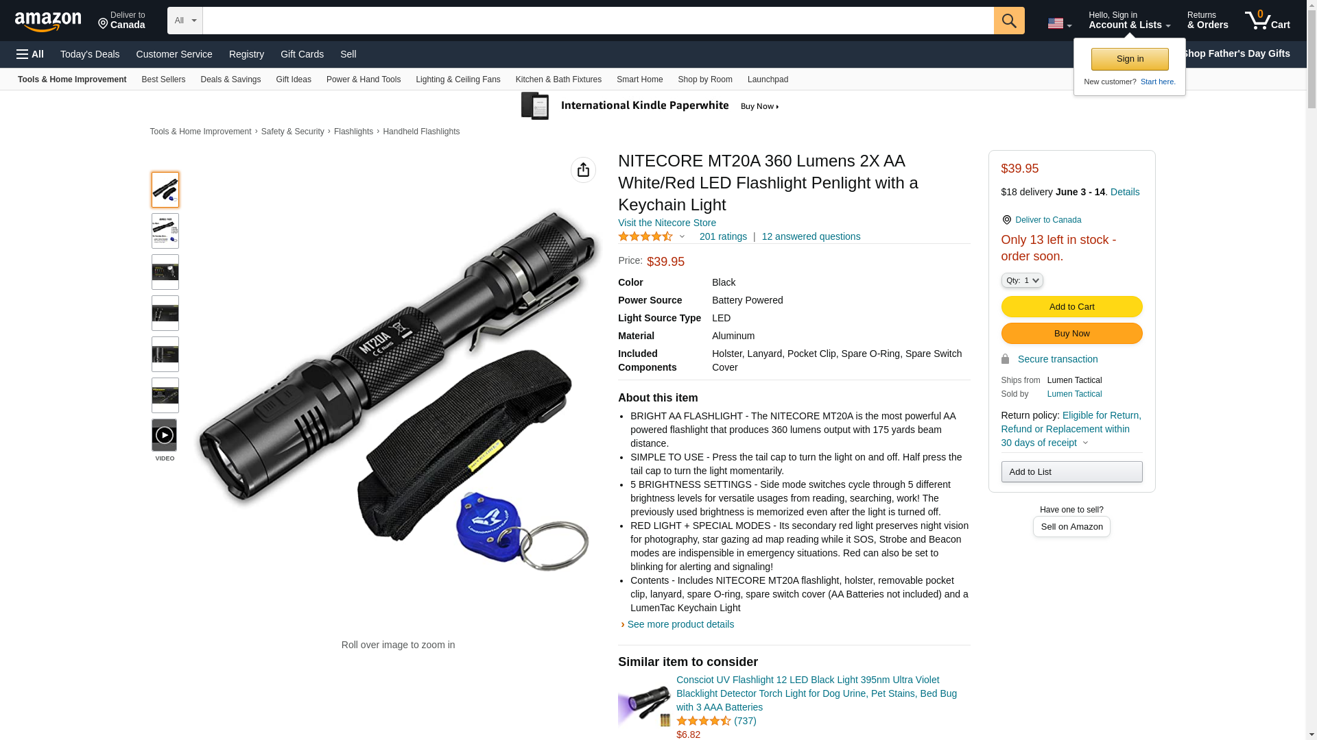 - Contents - Includes NITECORE MT20A flashlight, holster, removable pocket clip, lanyard, spare O-ring, spare switch cover (AA Batteries not included) and a NitecoreStore Sticker