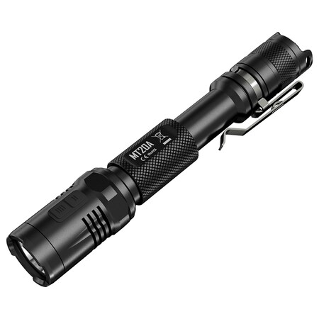 Carry light everywhere with the NITECORE MT20A 360 lumen LED flashlight. This slim, pen-style flashlight has a removable pocket clip and can comfortably tuck into pockets or bags for everyday carry. You'll find endless uses for this powerful tool featuring a CREE XP-G2 R5 LED capable of 360 lumens max output and 175 yards throw. Use the tactical tailcap to access momentary and constant illumination and the conveniently located mode switches to cycle through 5 brightness levels plus a secondary red output. There's even SOS, Beacon and Strobe modes for emergencies!<br><br>Powered by two easily sourced AA batteries, the MT20A runs for up to 180 hours on low and up to 1 hour and 45 minutes on high. Constructed from durable anodized aluminum and rated IPX8 for waterproofness, this flashlight is ready for daily use. <br><br><b>Specifications</b><br> LED: CREE XP-G2 R5<br> Battery Type Supported: AA<br> Peak Beam Distance: 175 yards<br> Peak Beam Intensity: 6500 cd<br> Brightness Outputs: <br>--- Turbo: 360 lumens / 1 hr 45 min<br>--- High: 240 lumens / 2 hr 15 min<br>--- Medium: 120 lumens / 5 hr 45 min<br>--- Low: 17 lumen / 24 hr<br>--- Ultralow: 1 lumen / 180 hr<br> IP Rating: IPX8<br> Impact Resistance: 2m<br> Dimensions: 6.09" (L) x 1" (D)<br> Weight: 2.65 oz (without battery)<br><b>Features</b><br> Tail switch for tactical applications</br> Side switches for selecting brightness levels or modes</br> Red LED provides constant/flashing illumination</br> Features Intelligent memory effect- remembers last brightness setting when turned back on (except SOS and location beacon)</br> Displays battery voltage with red light</br> Direct access to turbo/red light mode</br> Reverse polarity protection prevents damage from incorrectly inserted batteries</br> Toughened ultra-clear mineral glass with anti-reflective coating</br> HAIII military-grade hard-anodized</br> Tail stand capability