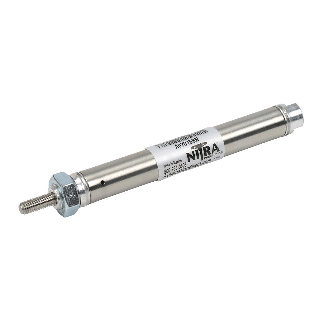 A07015SN - NITRA pneumatic cylinder, non-repairable, 7/16in bore, 3/16in rod diameter, 1 1/2in stroke, single acting, front nose mount.