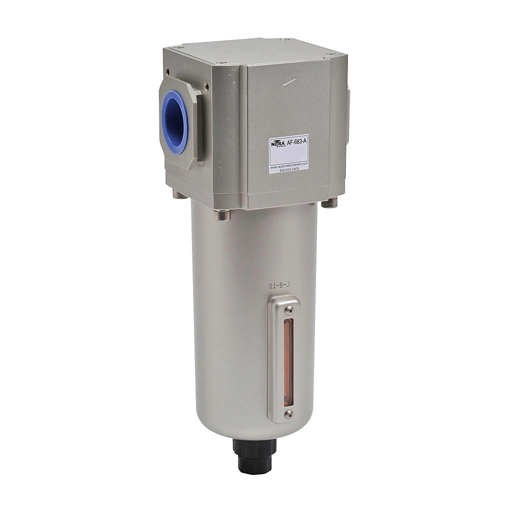 AF-683-A - NITRA pneumatic filter, particulate and moisture separation, 1in female NPT inlet(s), 1in female NPT outlet(s), automatic drain, die-cast...