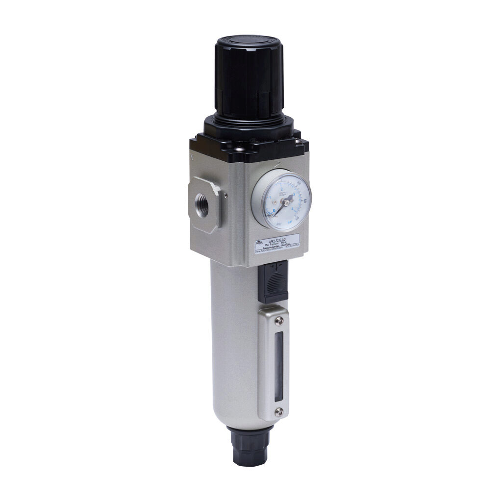 AFR2-3232-AD - NITRA pneumatic filter-regulator, 1/4in female NPT inlet(s), 1/4in female NPT outlet(s), 20-60 psi adjustable range, automatic drain,...