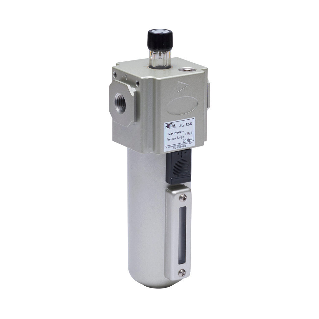 AL2-32-D - NITRA pneumatic lubricator, 1/4in female NPT inlet(s), 1/4in female NPT outlet(s), die-cast aluminum bowl, sight gauge. For use with Ax-32...