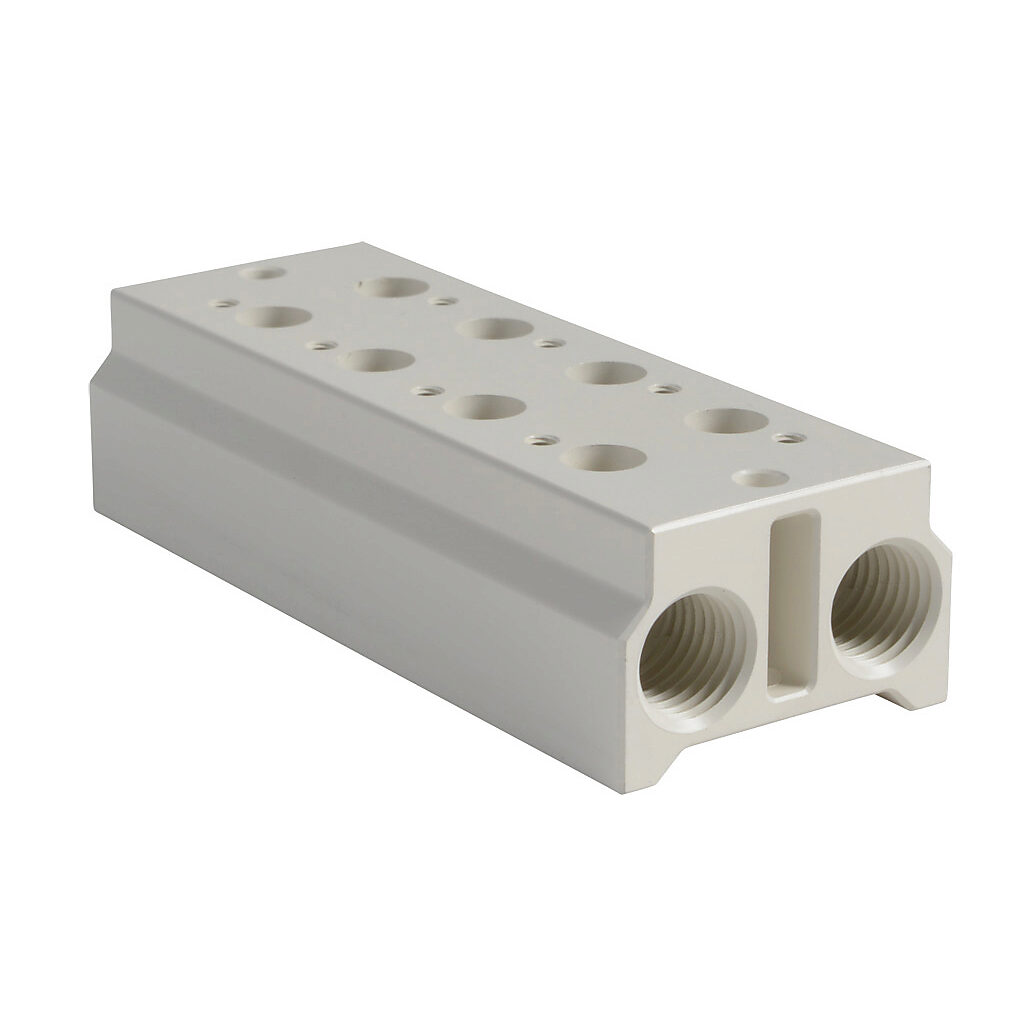 AM-314 - NITRA pneumatic valve manifold, aluminum, (4) stations, (2) 1/4in female NPT inlet(s), (2) 1/4in female NPT exhaust(s). For use with AVS-31 series...