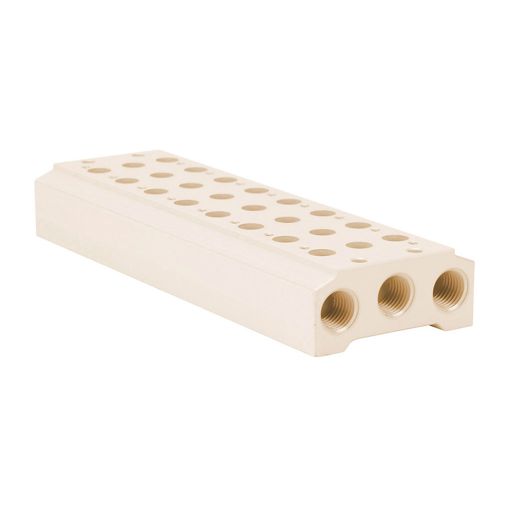 AM-518 - NITRA pneumatic valve manifold, aluminum, (8) stations, (2) 1/4in female NPT inlet(s), (4) 1/4in female NPT exhaust(s). For use with AVS-51 series...