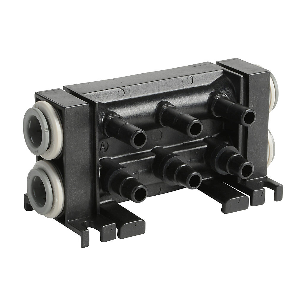 BVM-4325 - NITRA pneumatic modular valve manifold, fiberglass-reinforced thermoplastic, (3) stations, (2) 3/8in push-to-connect tubing inlet(s), (2) 3/8in...