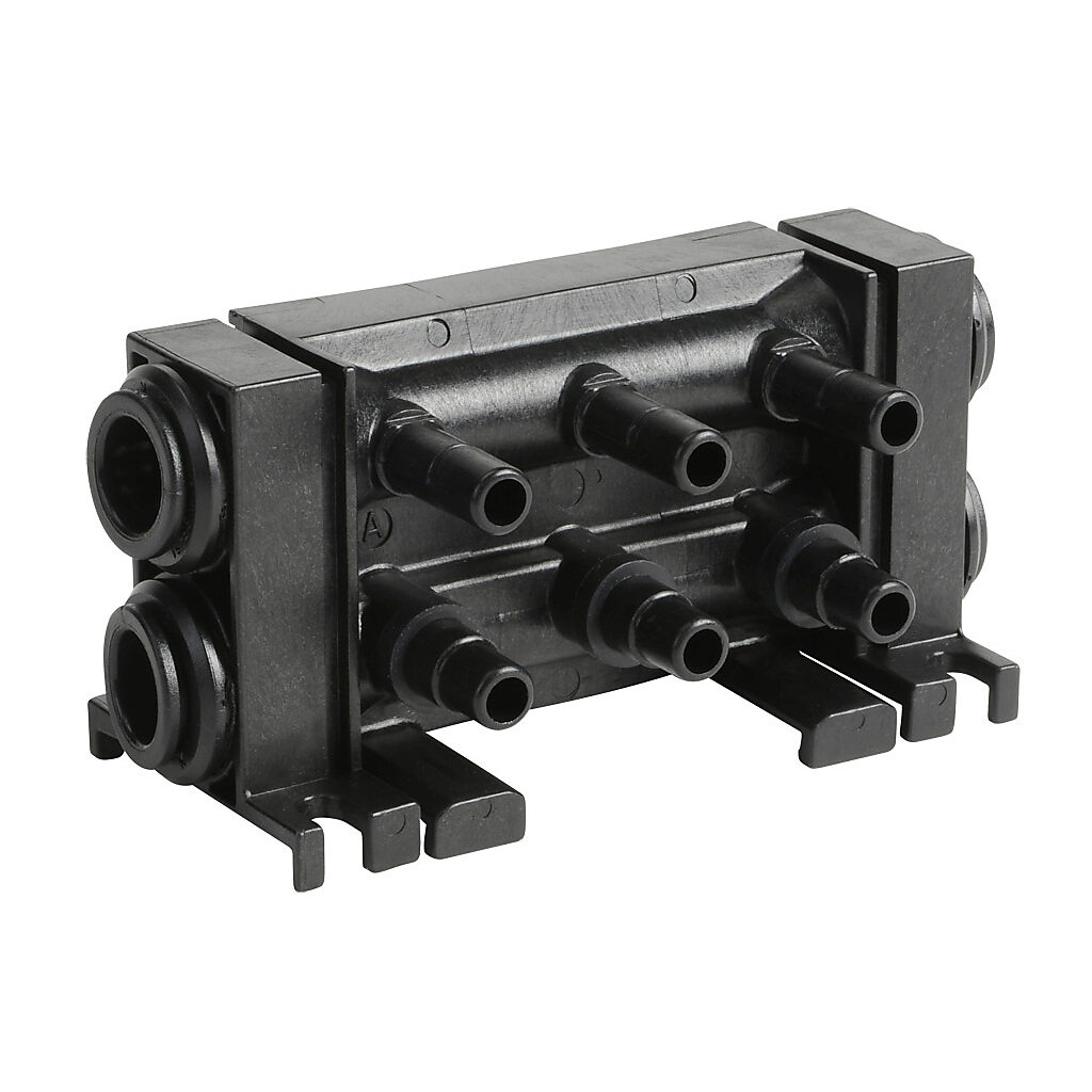 BVM-436M - NITRA pneumatic modular valve manifold, fiberglass-reinforced thermoplastic, (3) stations, (2) 10mm push-to-connect tubing inlet(s), (2) 10mm...