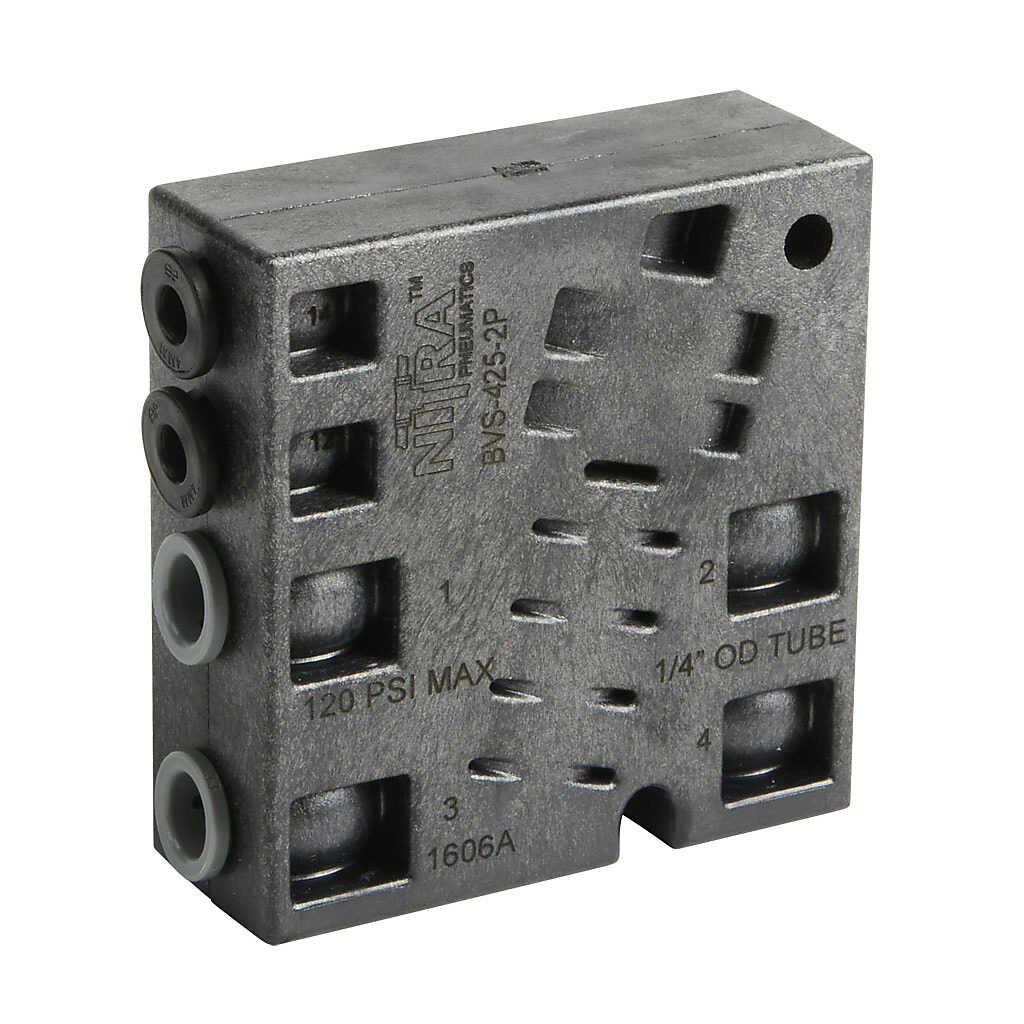 BVS-425-2P - NITRA pilot valve, 4-port (4-way), 2-position, double air pilot, (1) 1/4in PTC tubing inlet(s), (2) 1/4in PTC tubing outlet(s), (1) 1/4in PTC...