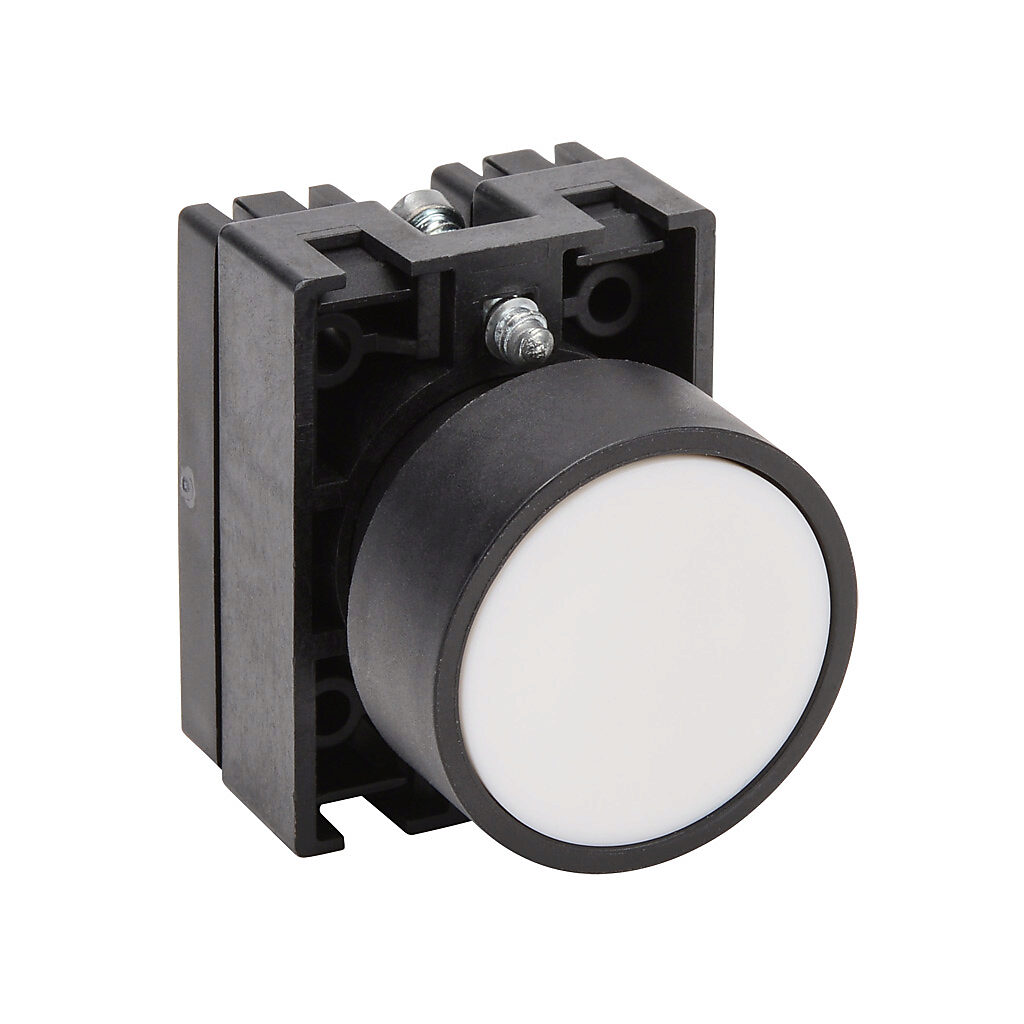 ECP3105 - NITRA pneumatic pushbutton, IP65, 22mm, momentary, operator only, plastic base, plastic bezel, black, Operator: white, flush, 30mm, round,...