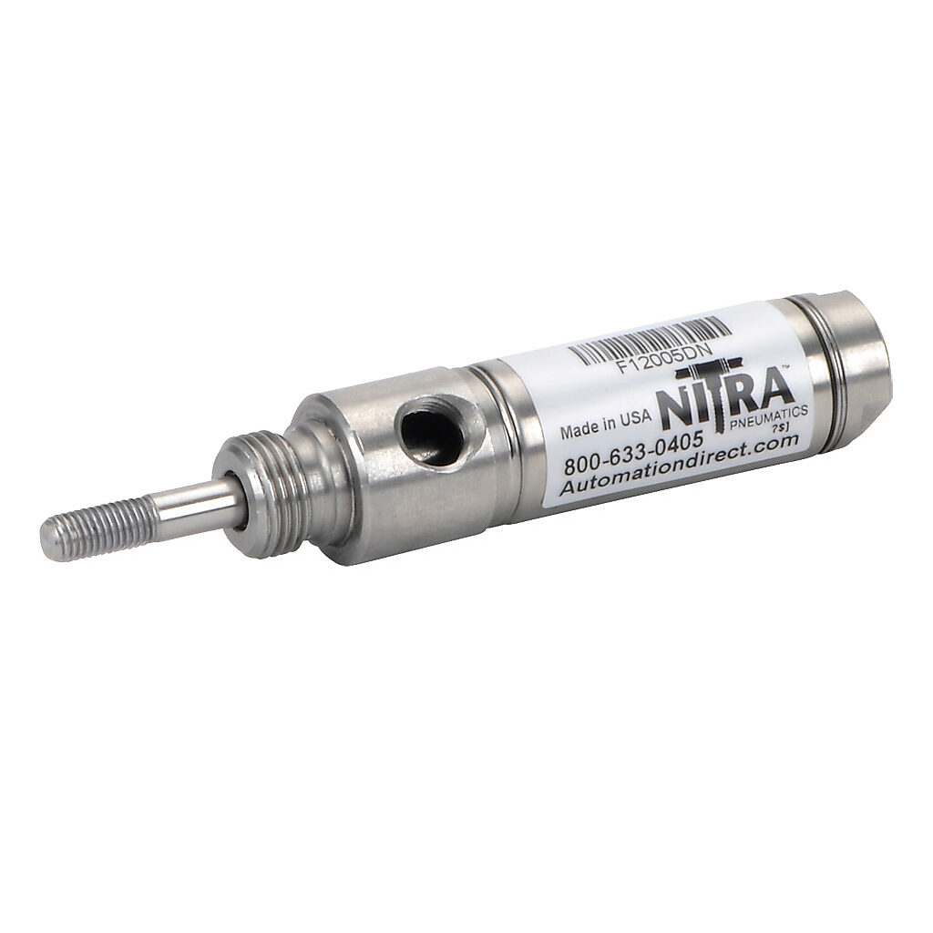 F12005DN - NITRA pneumatic cylinder, all stainless steel non-repairable, 3/4in bore, 1/4in rod diameter, 1/2in stroke, double acting, front nose mount.