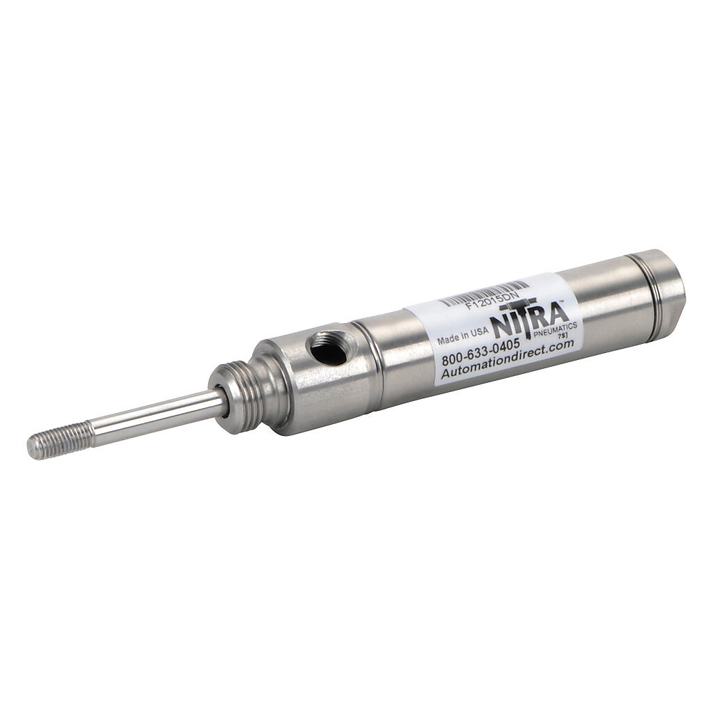 F12015DN - NITRA pneumatic cylinder, all stainless steel non-repairable, 3/4in bore, 1/4in rod diameter, 1 1/2in stroke, double acting, front nose mount.