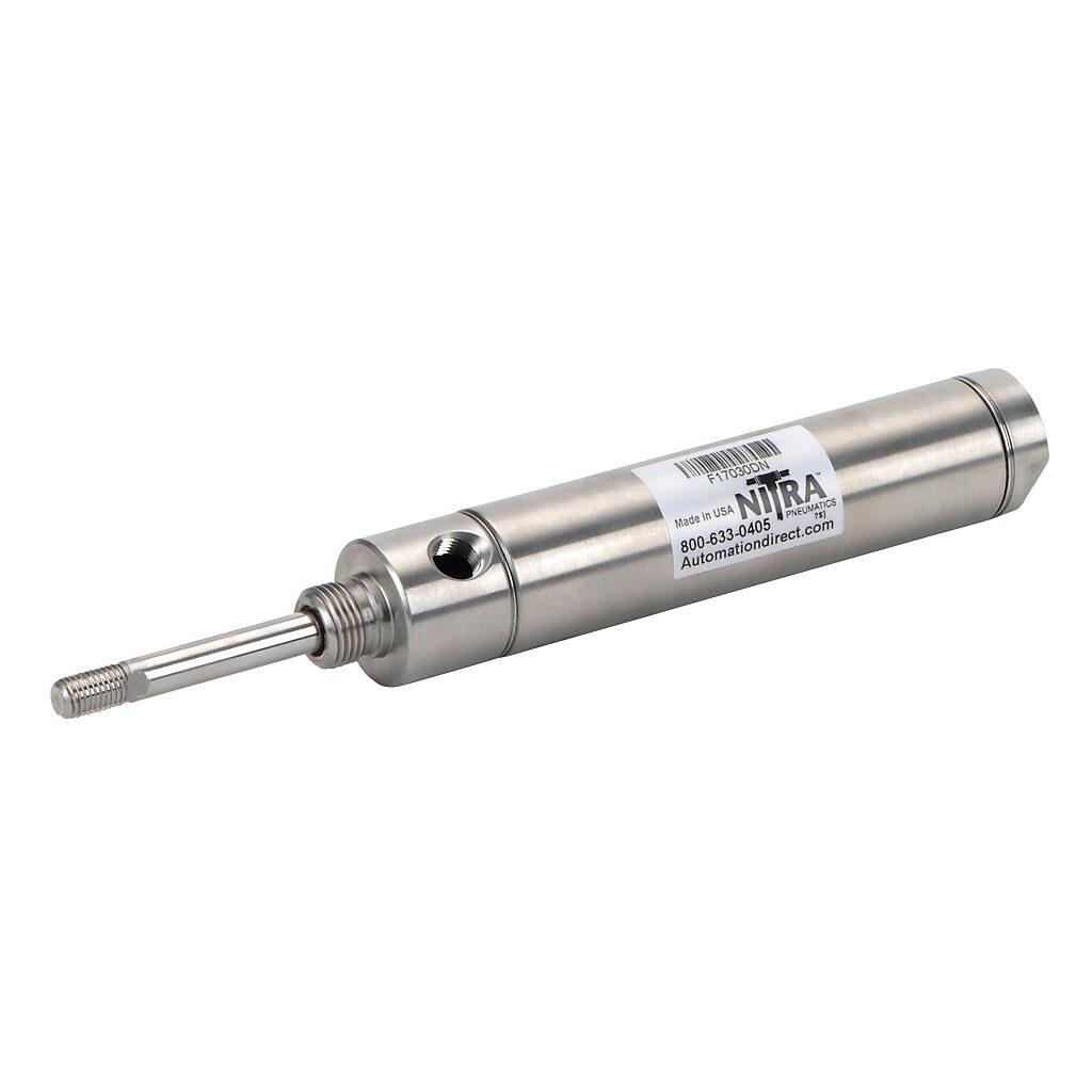 F17030DN - NITRA pneumatic cylinder, all stainless steel non-repairable, 1-1/16in bore, 5/16in rod diameter, 3in stroke, double acting, front nose mount.