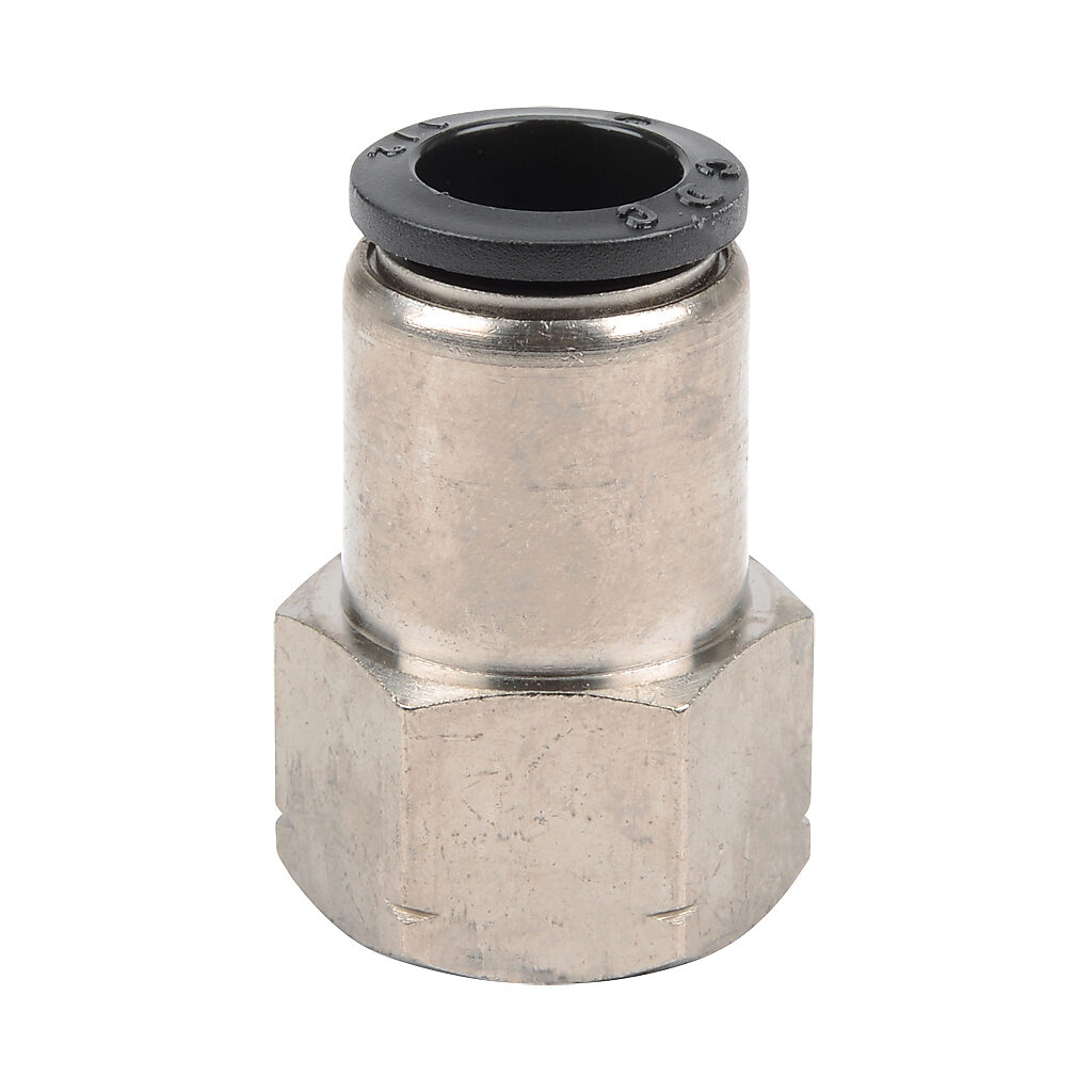FS12-12N - NITRA pneumatic push-to-connect fitting, female, straight, nickel-plated brass body, nickel-plated brass threads, 1/2in tube to 1/2in NPT...