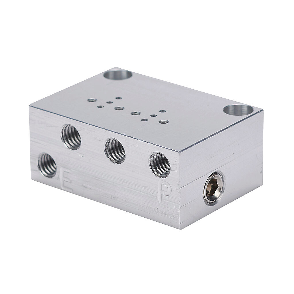 GM-312 - NITRA pneumatic valve manifold, anodized aluminum, rectangular, (2) stations, #10-32 female threaded inlet(s), #10-32 female threaded outlet(s),...