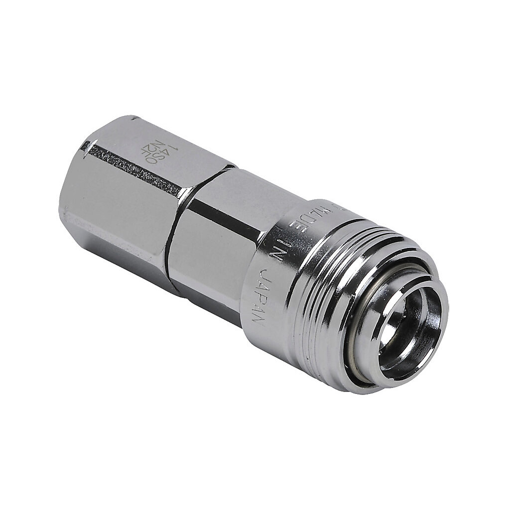 HC14-14F-B - NITRA pneumatic quick disconnect fitting, automatic coupling, chrome-plated steel body, 1/4in industrial interchange to 1/4in female NPT.