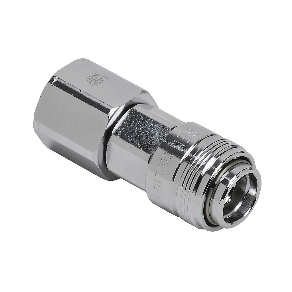 HC14-38F-B - NITRA pneumatic quick disconnect fitting, automatic coupling, chrome-plated steel body, 1/4in industrial interchange to 3/8in female NPT.