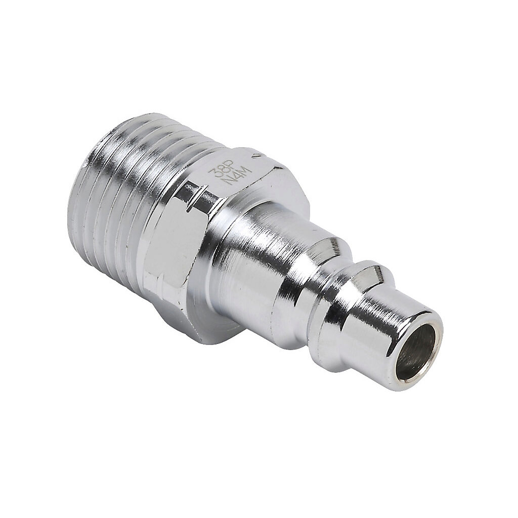 HCP38-12M-M - NITRA pneumatic quick disconnect fitting, coupling plug, chrome-plated steel body, 3/8in industrial interchange to 1/2in male NPT.
