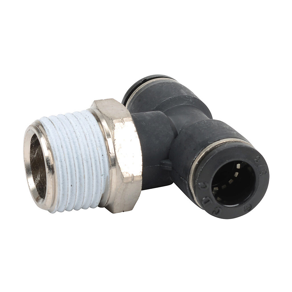 MBT38-12N - NITRA pneumatic push-to-connect fitting, male, branch tee, rotating, thermoplastic (PBT) body, nickel-plated brass threads, (2) 3/8in tube to...