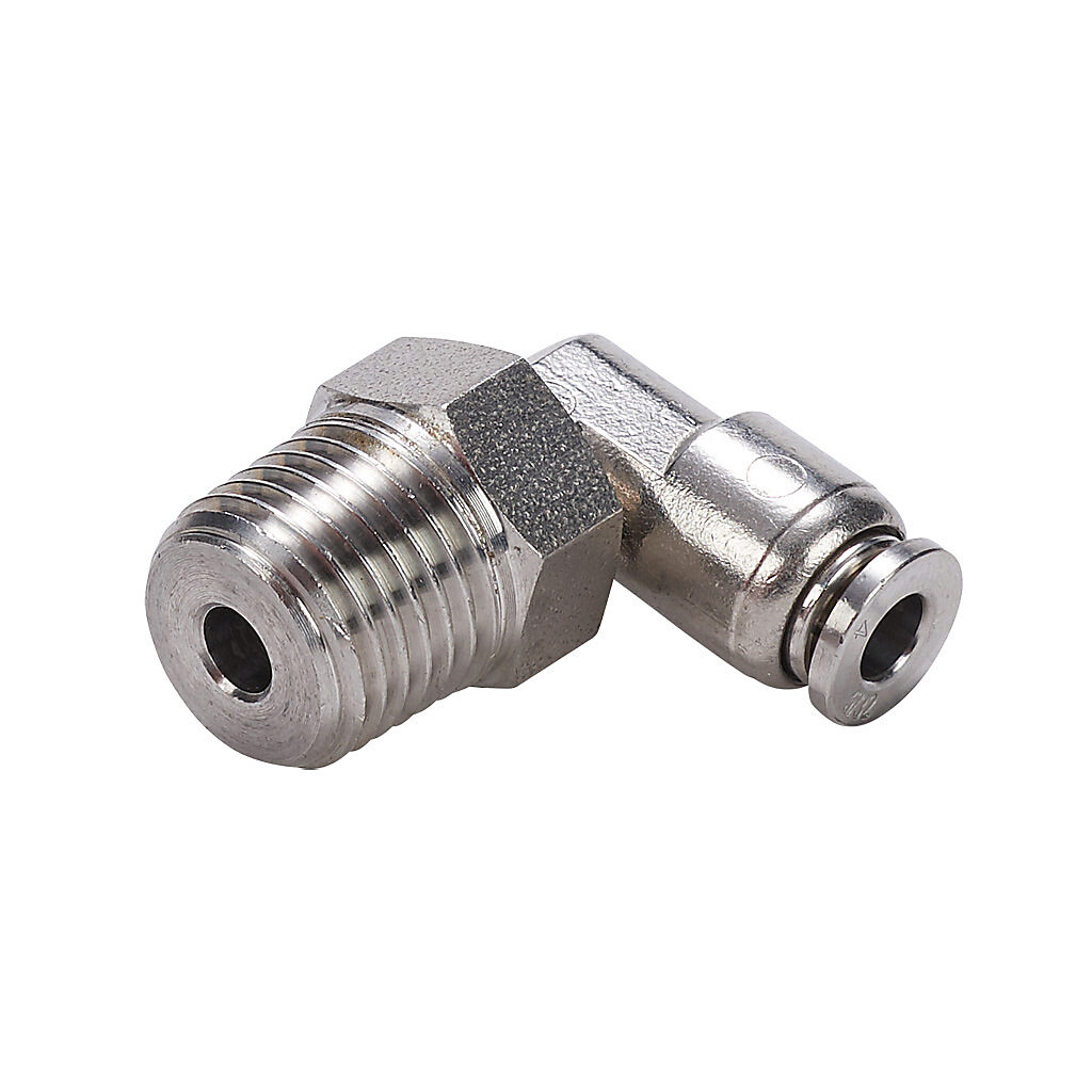 ME4M-14R-SS - NITRA pneumatic push-to-connect fitting, male, elbow, rotating, 316 stainless steel body, 316 stainless steel threads, 5/32in (4mm) tube to...