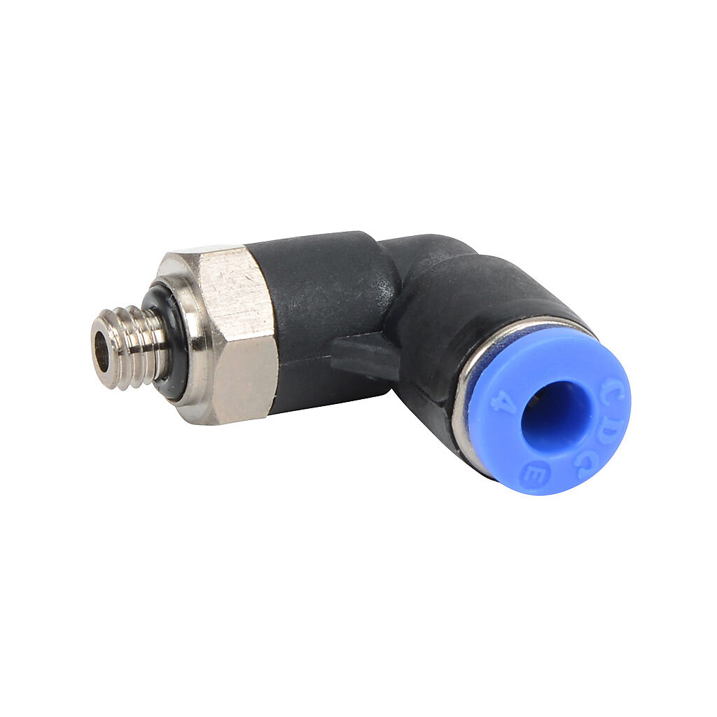 ME4M-M5 - NITRA pneumatic push-to-connect fitting, male, elbow, rotating, thermoplastic (PBT) body, nickel-plated brass threads, 5/32in (4mm) tube to M5 X...