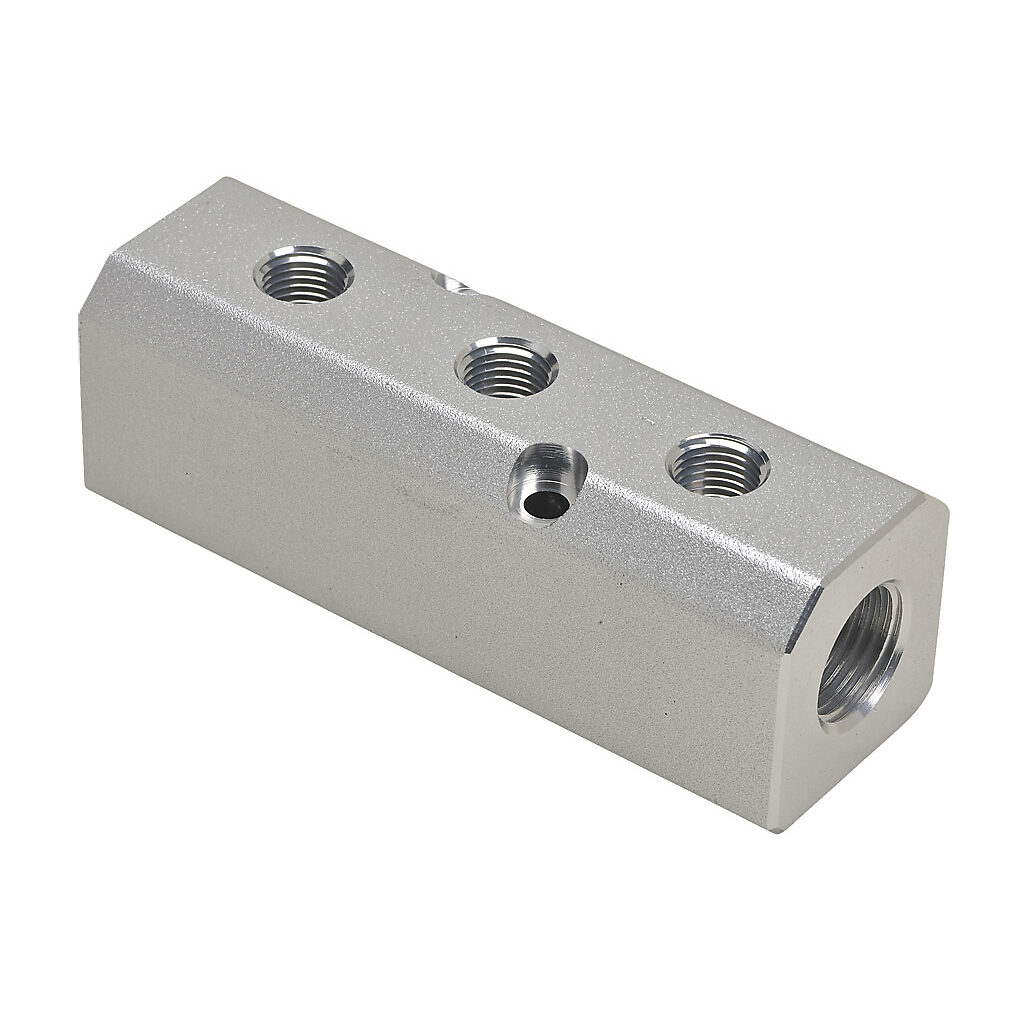 MLA-3 - NITRA pneumatic valve manifold, aluminum, rectangular, 500 psi maximum operating pressure, (3) stations, (2) 1/2in female NPT inlet(s), (3) 1/4in...