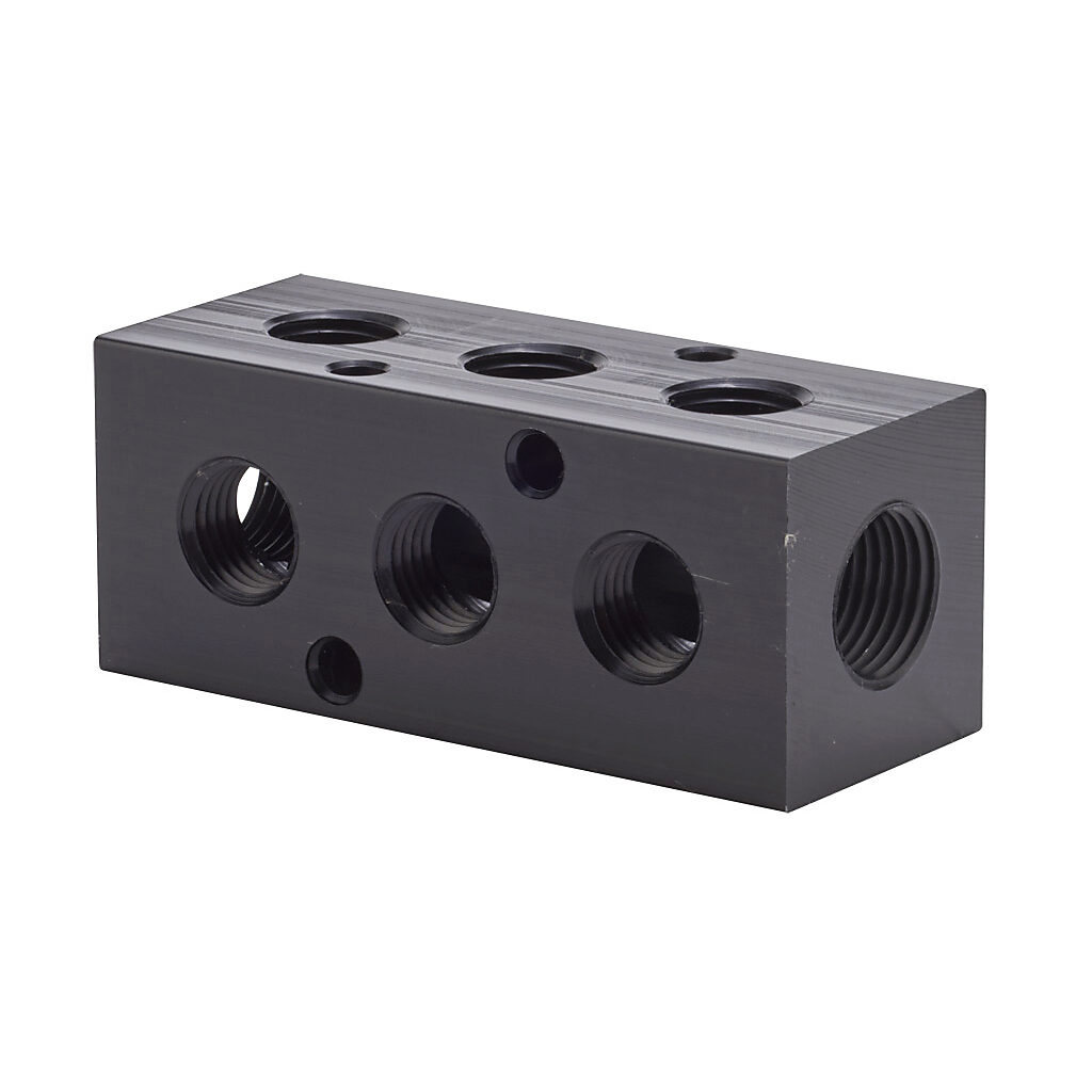 MRA-3DC-90 - NITRA pneumatic valve manifold, aluminum, rectangular, 1000 psi maximum operating pressure, (3) stations, (2) 3/8in female NPT inlet(s), (6)...