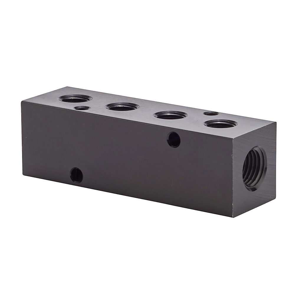 MRA-4CB - NITRA pneumatic valve manifold, aluminum, rectangular, 1000 psi maximum operating pressure, (4) stations, (2) 1/4in female NPT inlet(s), (4)...