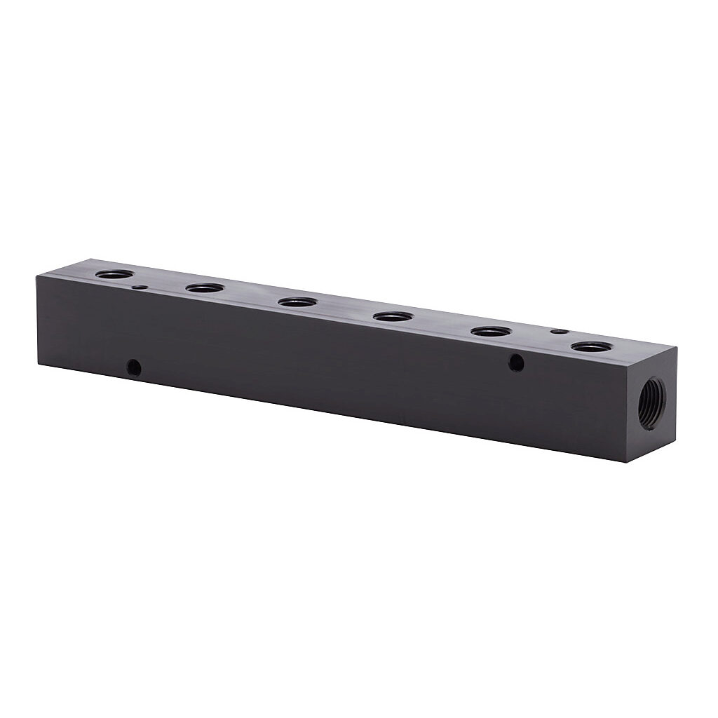 MRA-6DC-W - NITRA pneumatic valve manifold, aluminum, rectangular, 1000 psi maximum operating pressure, (6) stations, (2) 3/8in female NPT inlet(s), (6)...