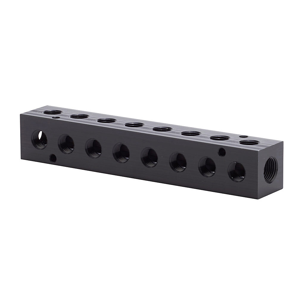 MRA-8DC-90 - NITRA pneumatic valve manifold, aluminum, rectangular, 1000 psi maximum operating pressure, (8) stations, (2) 3/8in female NPT inlet(s), (16)...