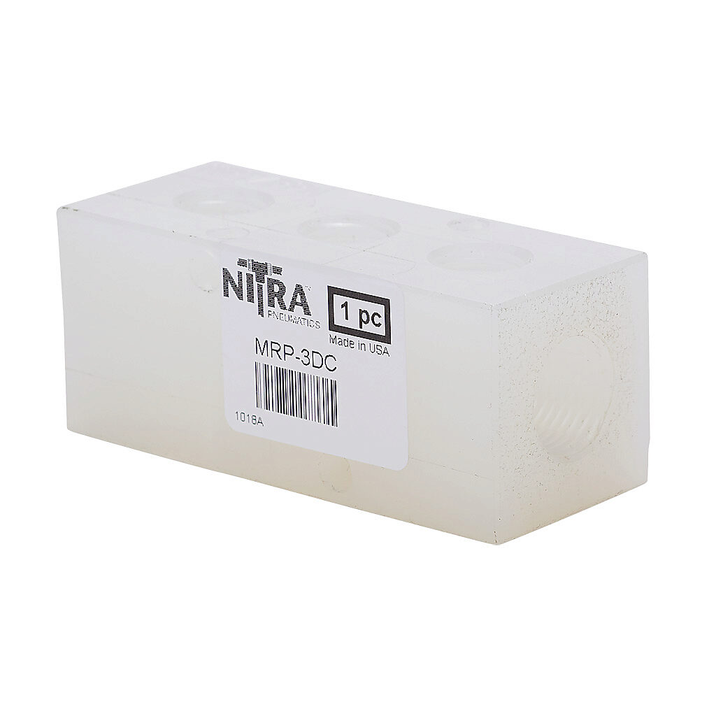MRP-3DC - NITRA pneumatic or water valve manifold, polypropylene (PP), rectangular, 150 psi maximum operating pressure, (3) stations, (2) 3/8in female NPT...