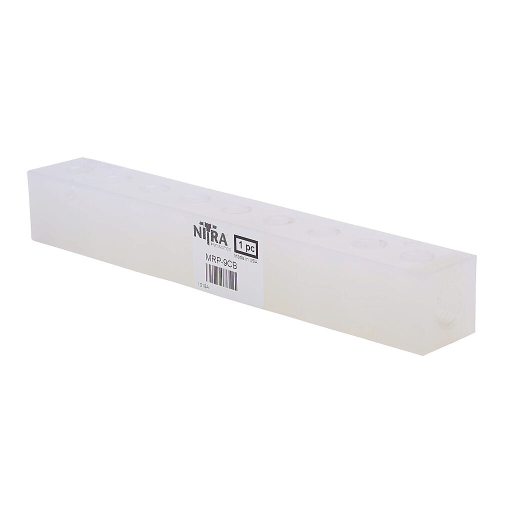MRP-9CB - NITRA pneumatic or water valve manifold, polypropylene (PP), rectangular, 150 psi maximum operating pressure, (9) stations, (2) 1/4in female NPT...