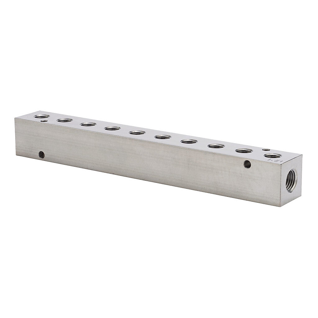 MRS-10CB - NITRA pneumatic valve manifold, stainless steel, rectangular, 3500 psi maximum operating pressure, (10) stations, (2) 1/4in female NPT inlet(s),...