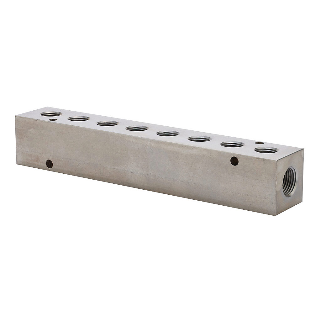 MRS-8DC - NITRA pneumatic valve manifold, stainless steel, rectangular, 3500 psi maximum operating pressure, (8) stations, (2) 3/8in female NPT inlet(s),...