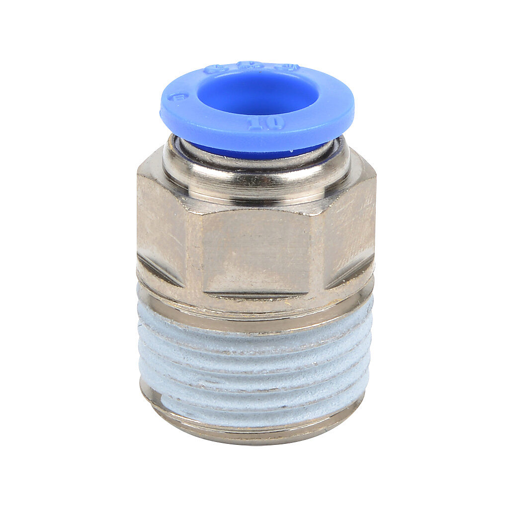 MS10M-12R - NITRA pneumatic push-to-connect fitting, male, straight, nickel-plated brass body, nickel-plated brass threads, 10mm tube to R1/2 BSPT...