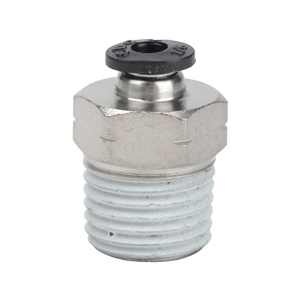 MS18-14N - NITRA pneumatic push-to-connect fitting, male, straight, nickel-plated brass body, nickel-plated brass threads, 1/8in tube to 1/4in NPT...