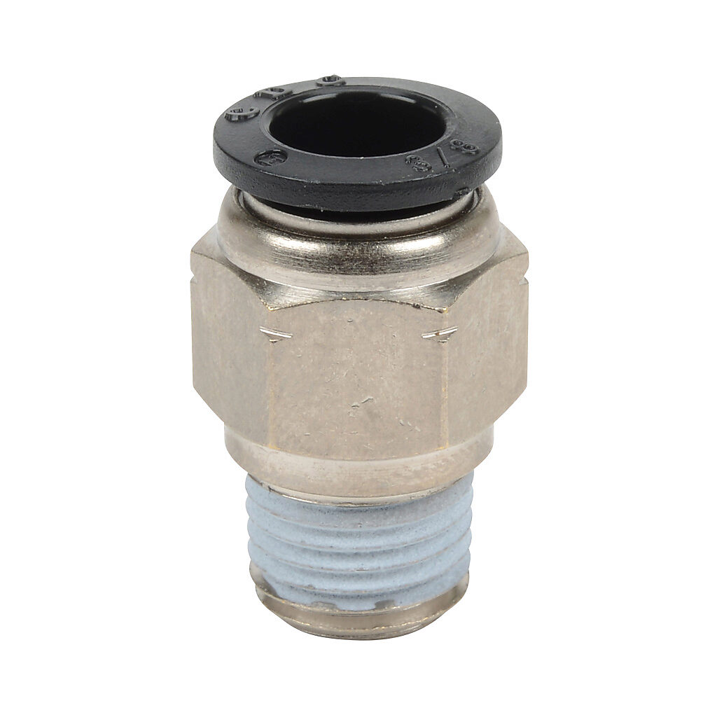 MS38-14N - NITRA pneumatic push-to-connect fitting, male, straight, nickel-plated brass body, nickel-plated brass threads, 3/8in tube to 1/4in NPT...