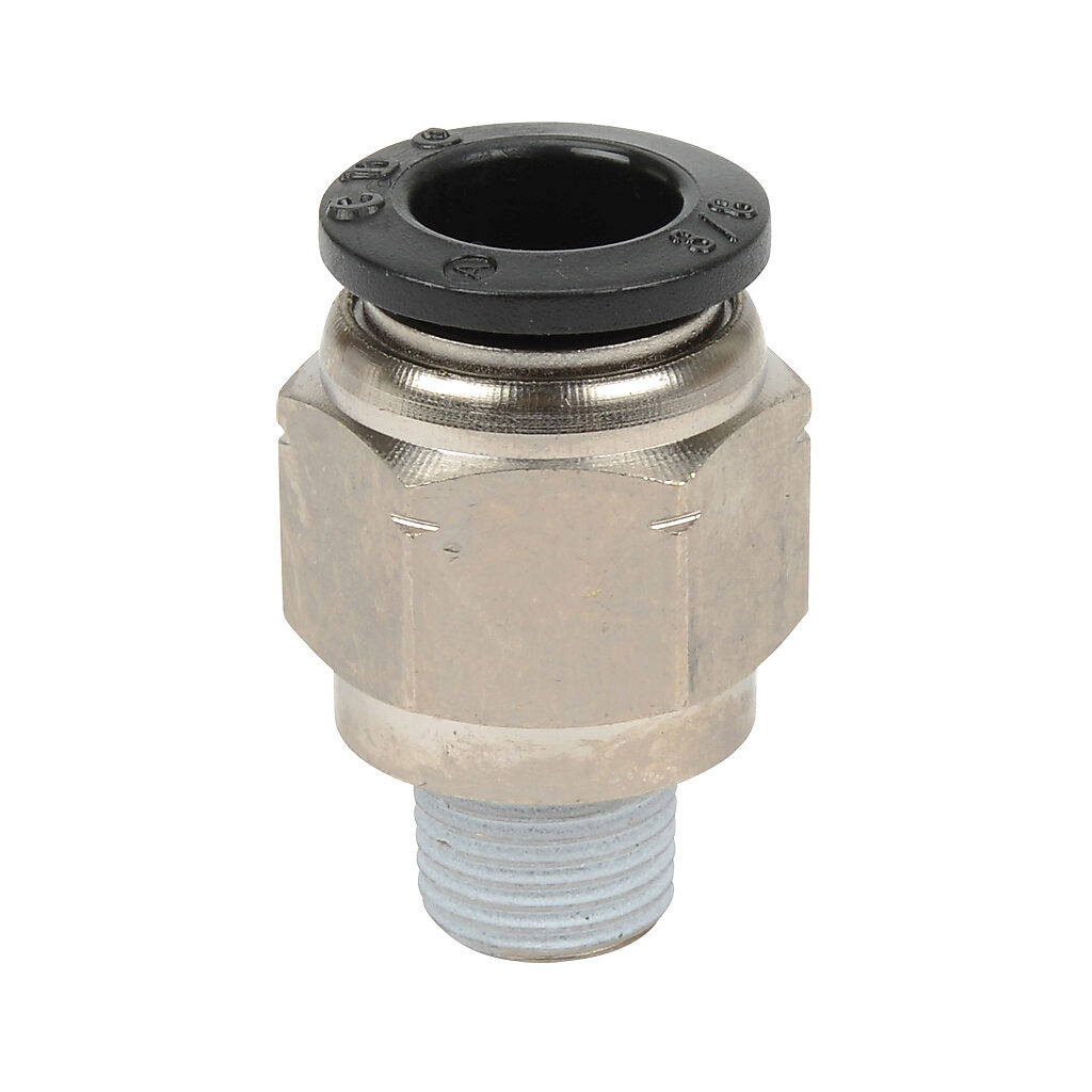 MS38-18N - NITRA pneumatic push-to-connect fitting, male, straight, nickel-plated brass body, nickel-plated brass threads, 3/8in tube to 1/8in NPT...