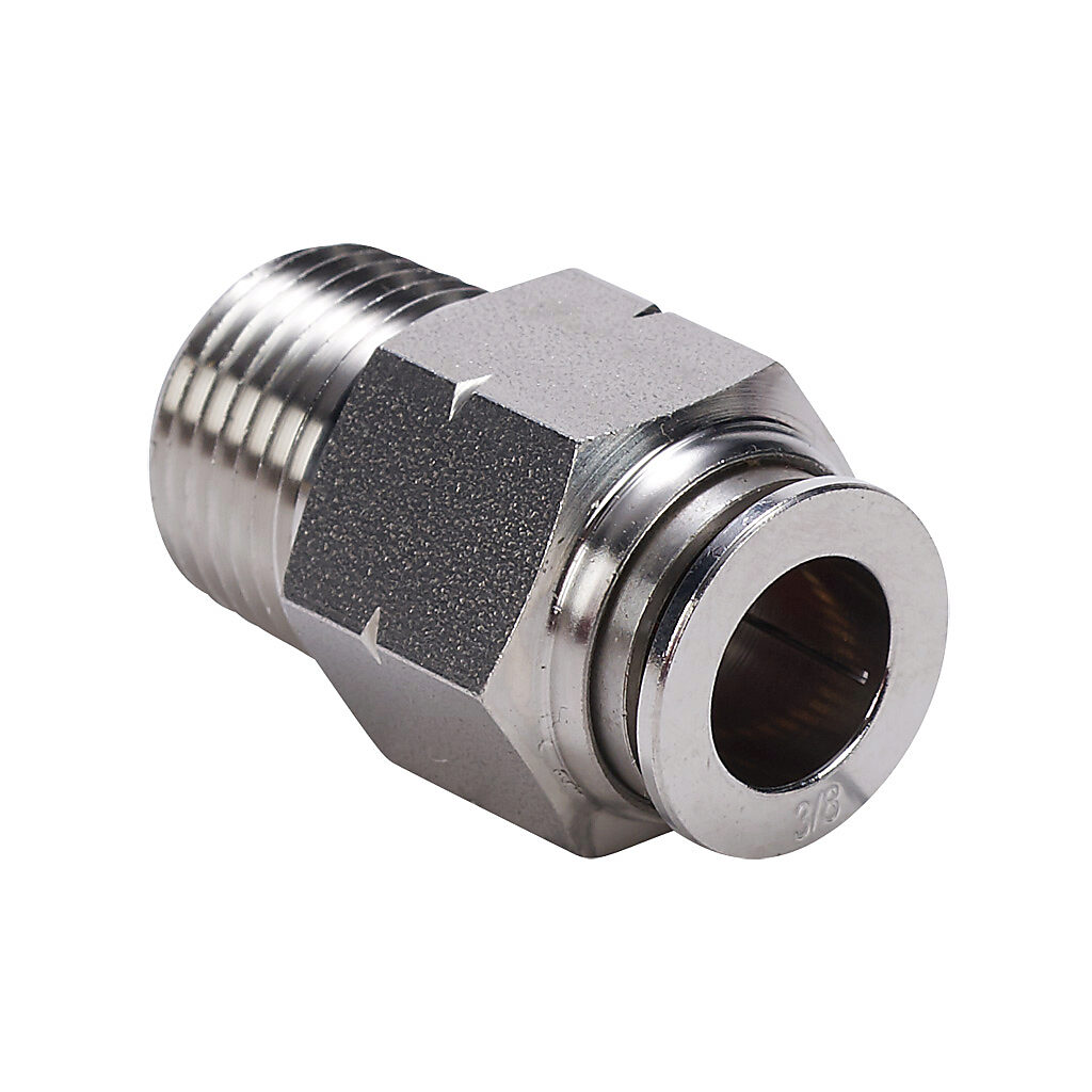 MS38-38N-SS - NITRA pneumatic push-to-connect fitting, male, straight, 316 stainless steel body, 316 stainless steel threads, 3/8in tube to 3/8in NPT...