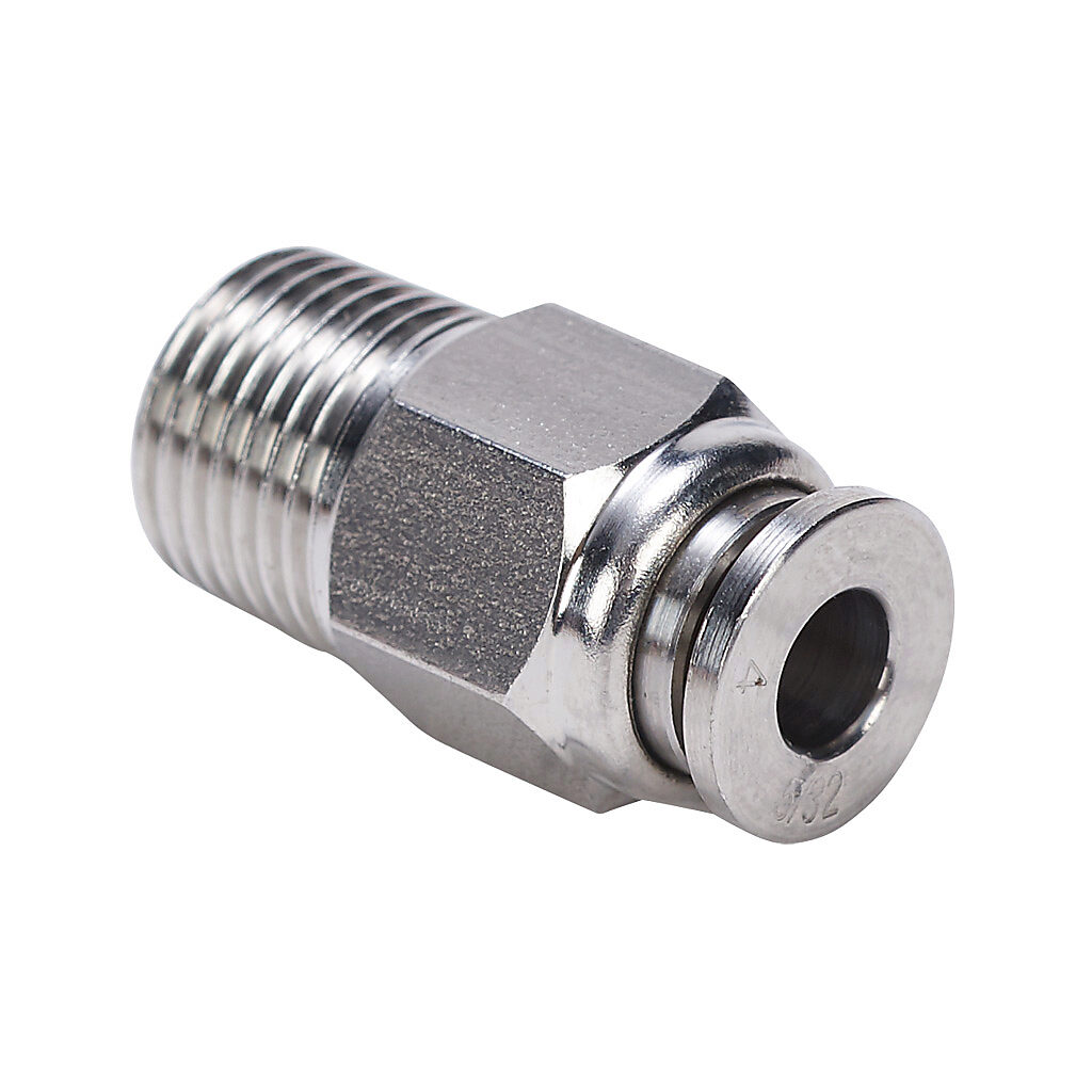 MS4M-18R-SS - NITRA pneumatic push-to-connect fitting, male, straight, 316 stainless steel body, 316 stainless steel threads, 5/32in (4mm) tube to R1/8...
