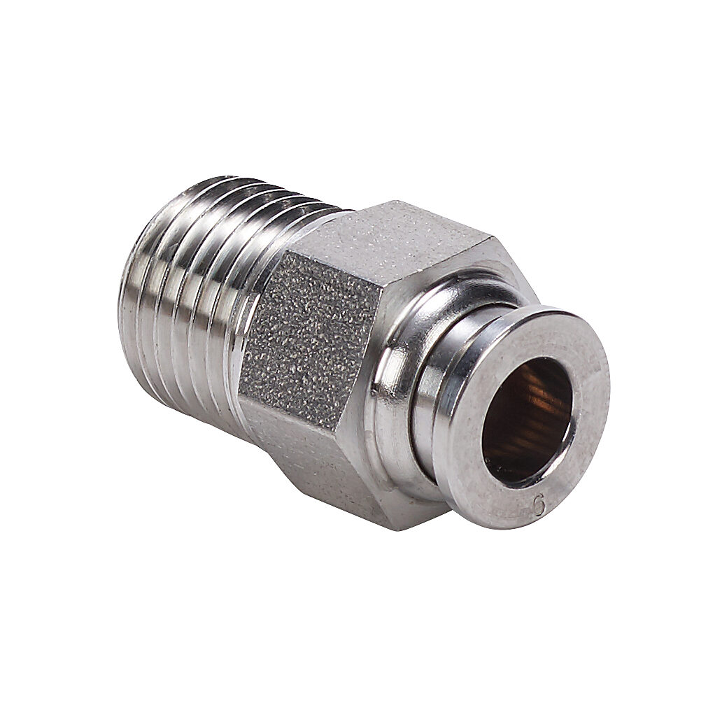 MS6M-14R-SS - NITRA pneumatic push-to-connect fitting, male, straight, 316 stainless steel body, 316 stainless steel threads, 6mm tube to R1/4 BSPT...