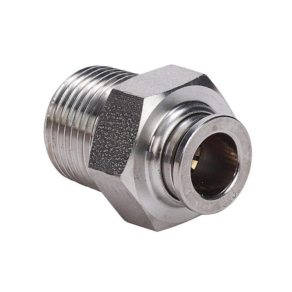 MS8M-38R-SS - NITRA pneumatic push-to-connect fitting, male, straight, 316 stainless steel body, 316 stainless steel threads, 5/16in (8mm) tube to R3/8...