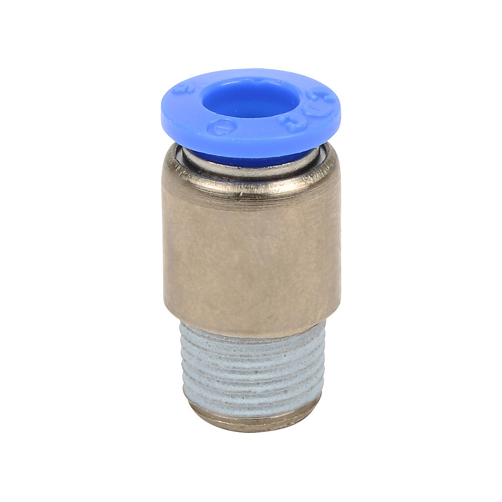 MSR6M-18R - NITRA pneumatic push-to-connect fitting, male, round straight, nickel-plated brass body, nickel-plated brass threads, 6mm tube to R1/8 BSPT...