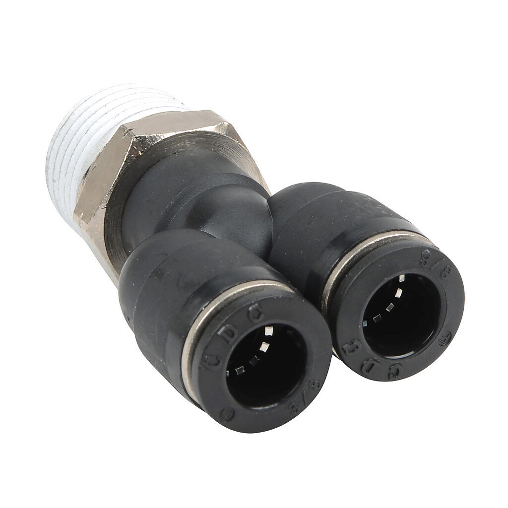 MY38-12N - NITRA pneumatic push-to-connect fitting, male, Y, rotating, thermoplastic (PBT) body, nickel-plated brass threads, (2) 3/8in tube to 1/2in NPT...