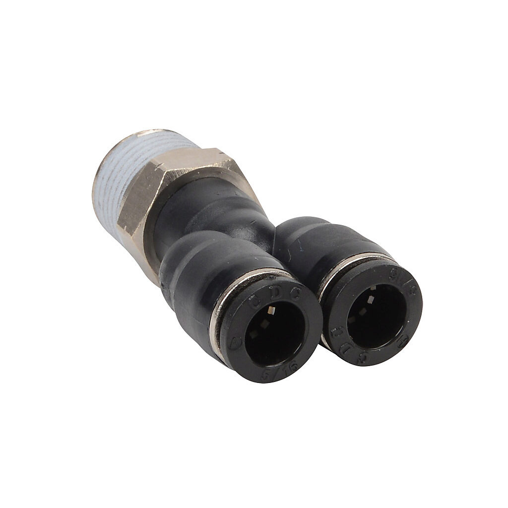 MY516-38N - NITRA pneumatic push-to-connect fitting, male, Y, rotating, thermoplastic (PBT) body, nickel-plated brass threads, (2) 5/16in (8mm) tube to...